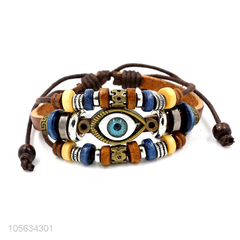Promotional products multitier men leather bracelet vintage alloy eye bracelet