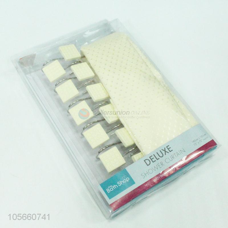 High quality polyester shower curtain matching with 12pcs poly resin hooks