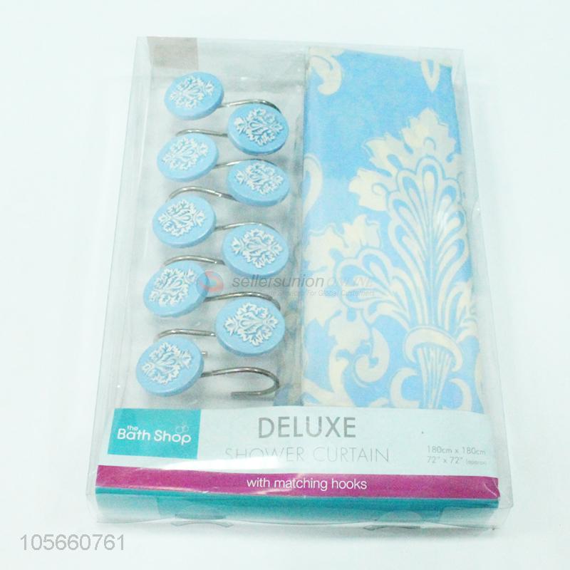 Elegant polyester shower curtain matching with 12pcs poly resin hooks