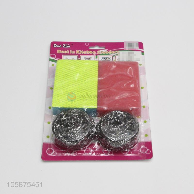Popular design stainless steel wire clean ball and scrubbing sponges set