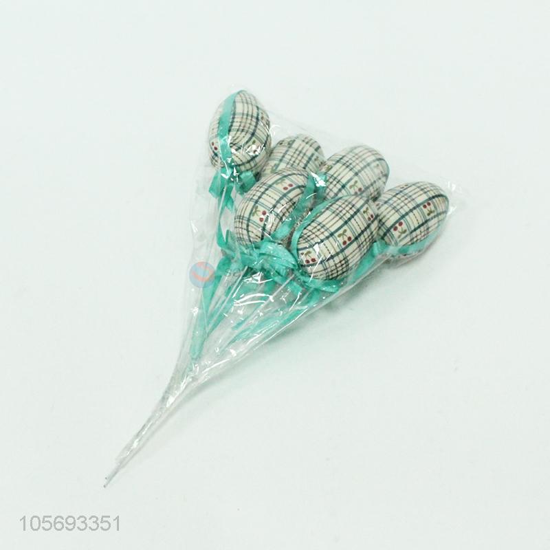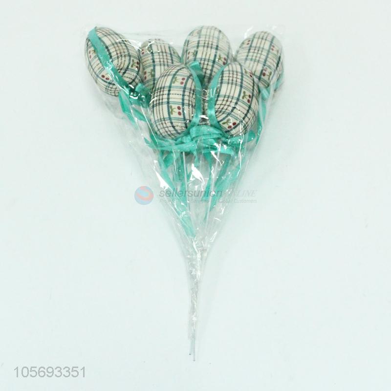 Wholesale Easter foam egg decoration pick/sticks with ribbon