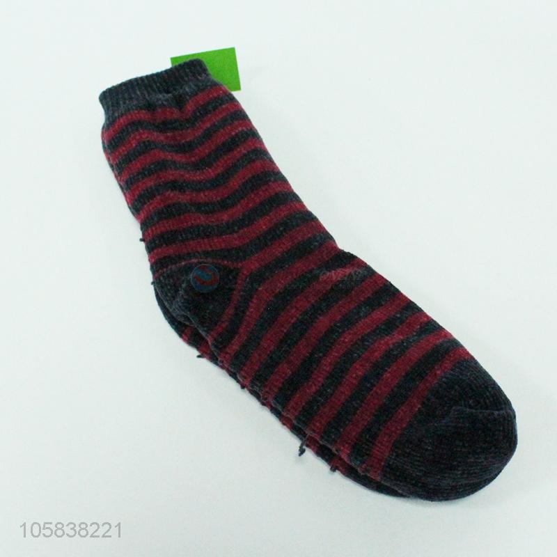 Low price women stripes fleece slipper home acrylic socks