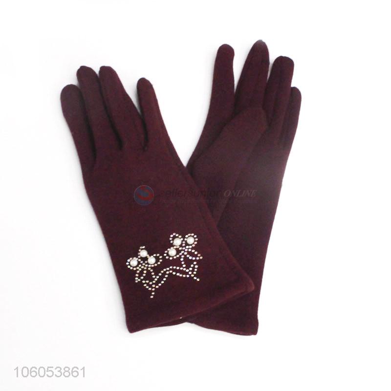 Fashion Style Velvet Lining Windproof Warm Gloves For Lady