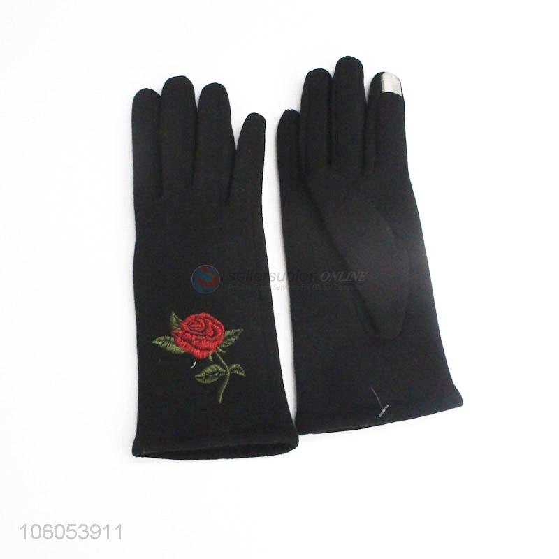 Wholesale Embroider Flower Pattern Winter Touch Screen Gloves