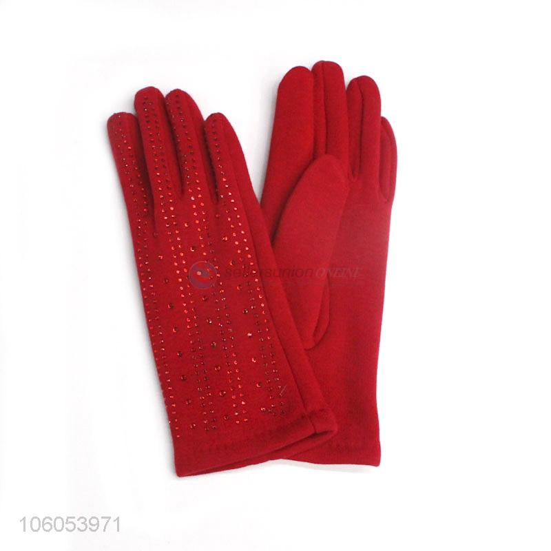 New Arrival Red Velvet Lining Winter Touch Screen Gloves For Women
