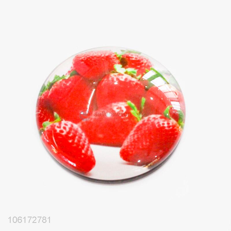 Wholesale price strawberry pattern round glass fridge magnet