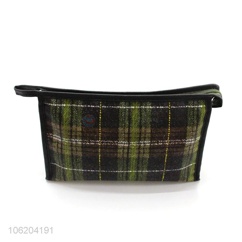 Good quality check printing pu leather makeup bags