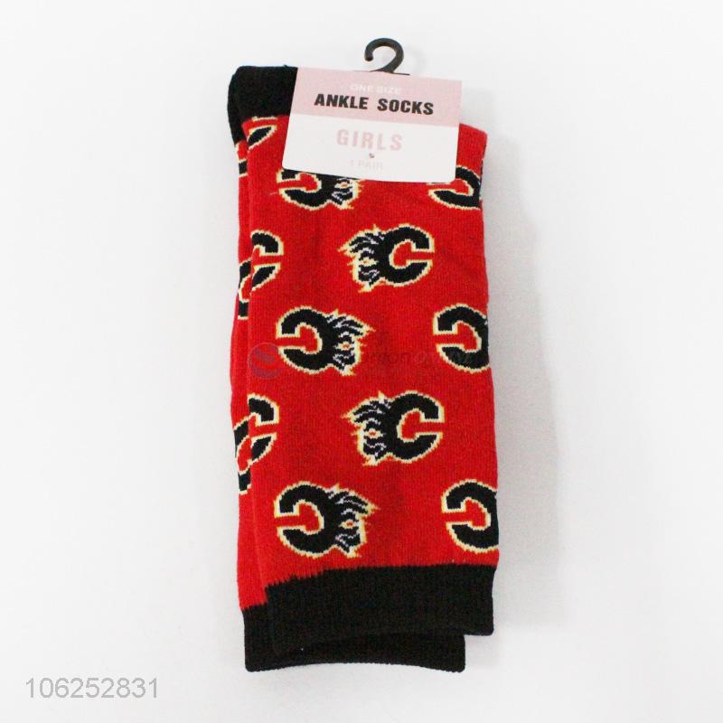 Quality accurance red color polyester sports men's socks