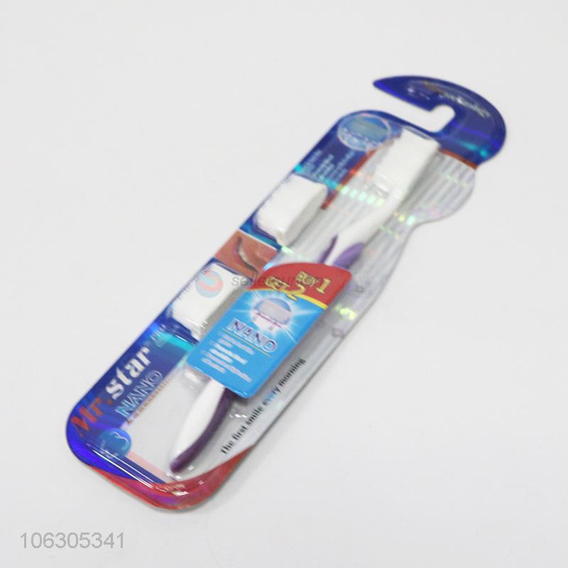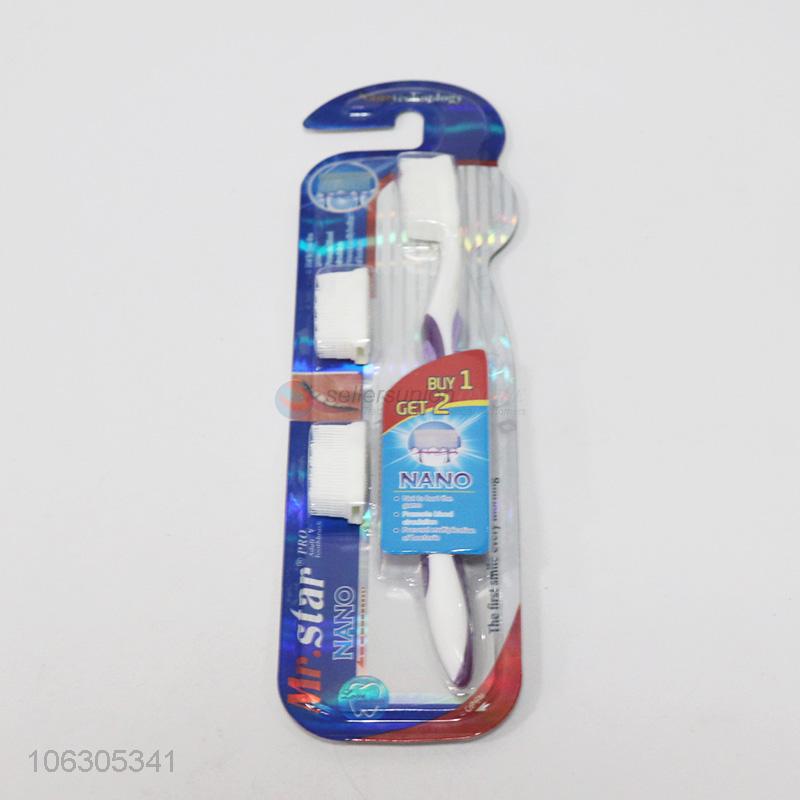 Wholesale comfortable handle adult toothbrush with 2 toothbrush head