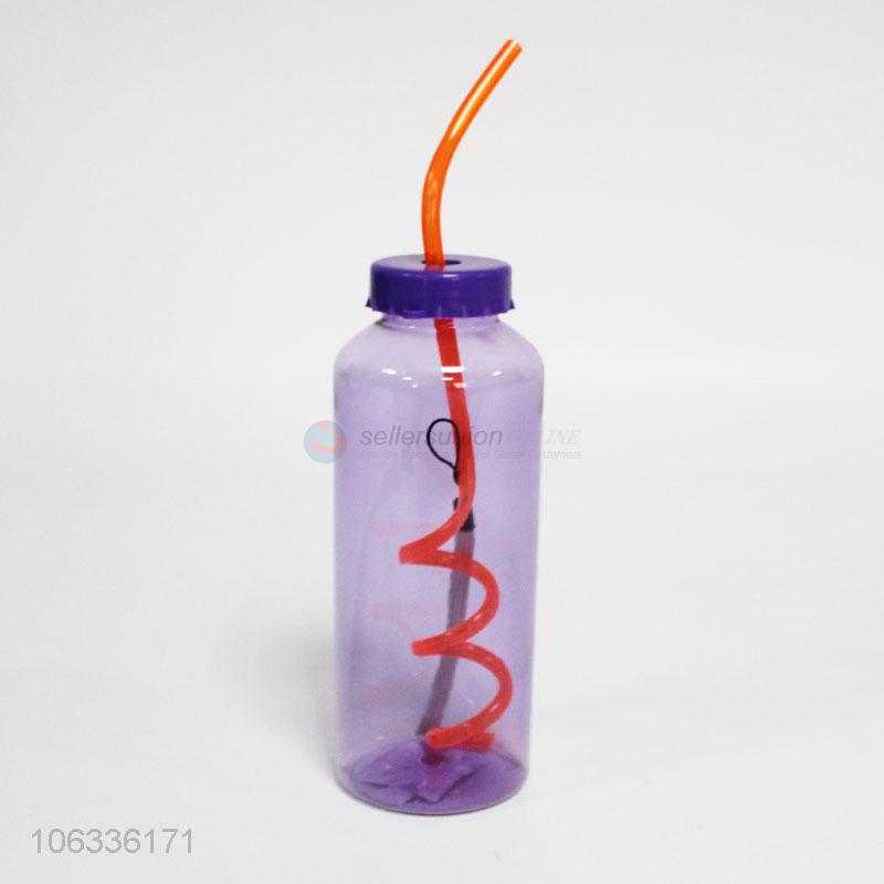 Wholesale BPA free plastic water bottle with spiral straw