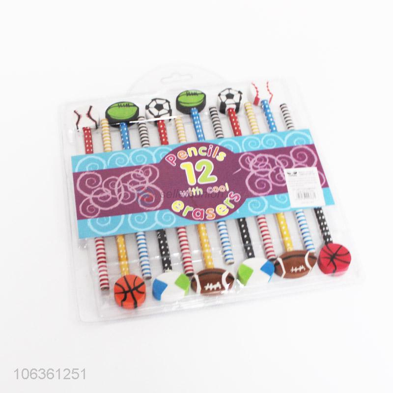 Wholesale 12 Pieces Wooden Pencils With Cartoon Eraser