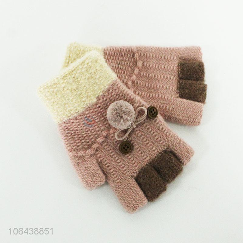 Hot products young girl winter half-finger knitting gloves