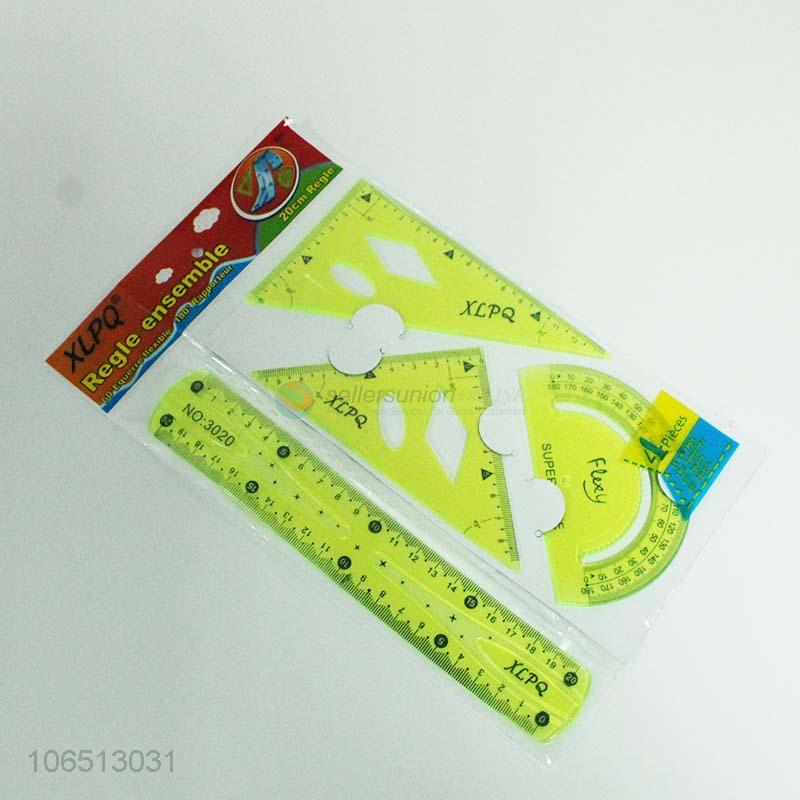 Best Quality 4PCS Plastic Ruler Set Kids School Stationery