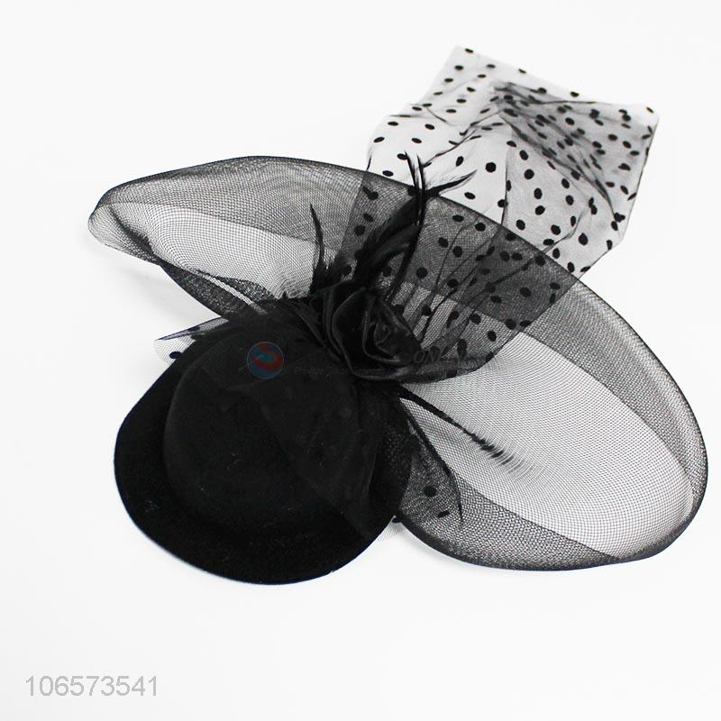 High quality ladies elegant black mesh top hat headwear