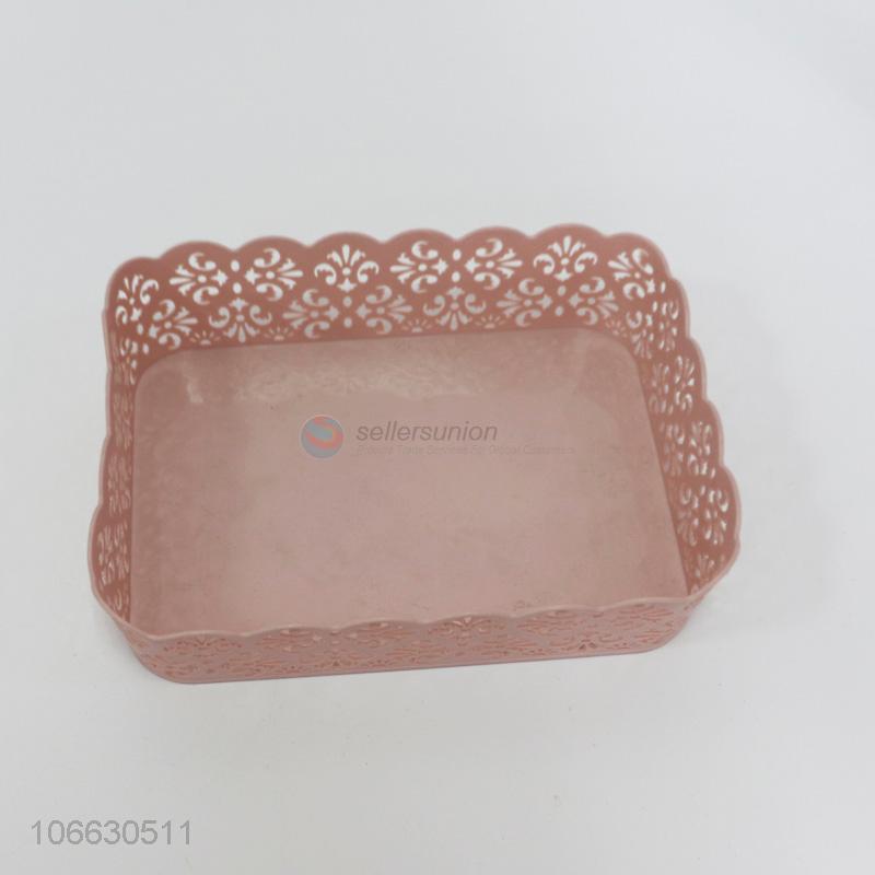 China supplier rectangle plastic fruit basket with hollowed lace sides
