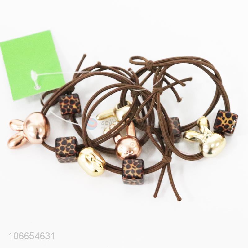 Promotional cheap 5pcs cartoon rabbit beads hair rings