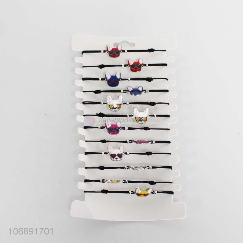 New product 12pcs female cute dog head design bracelet