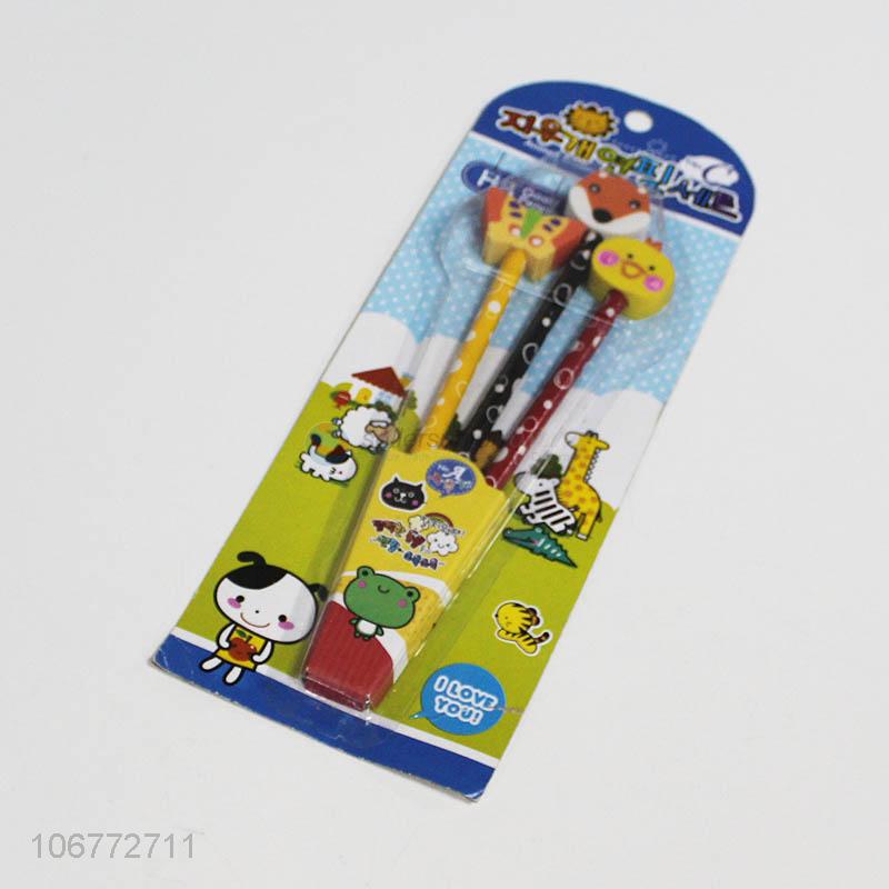 Hot sellingcute cartoon kids stationery wood pencil with eraser