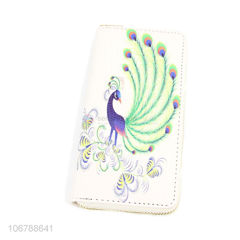 Fashion Colorful Peacock Pattern Zipper Wallet For Ladies