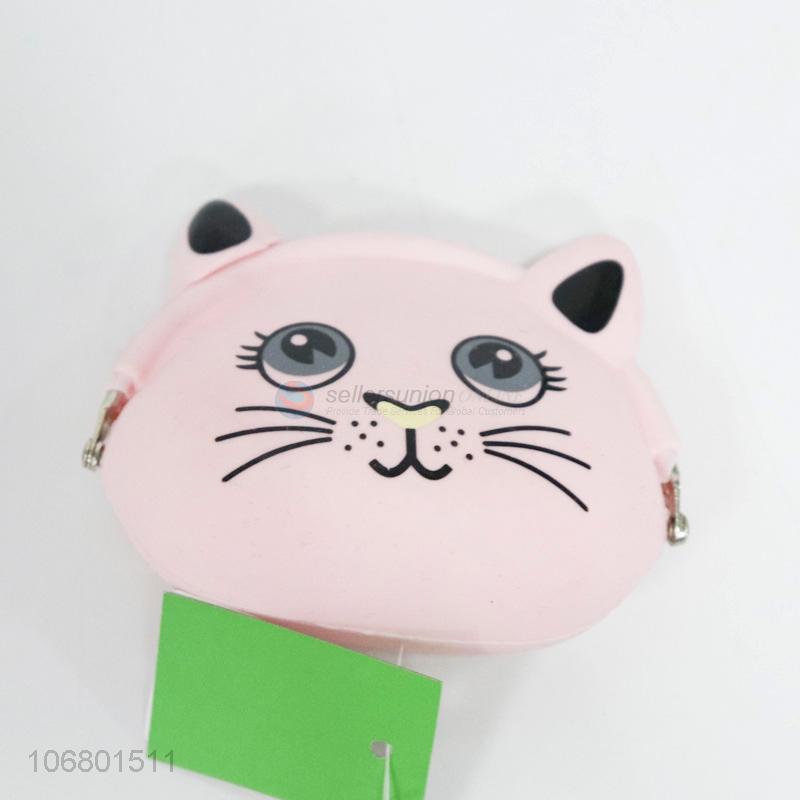 Wholesale fashion cartoon animal cat silicone coin purse for gift