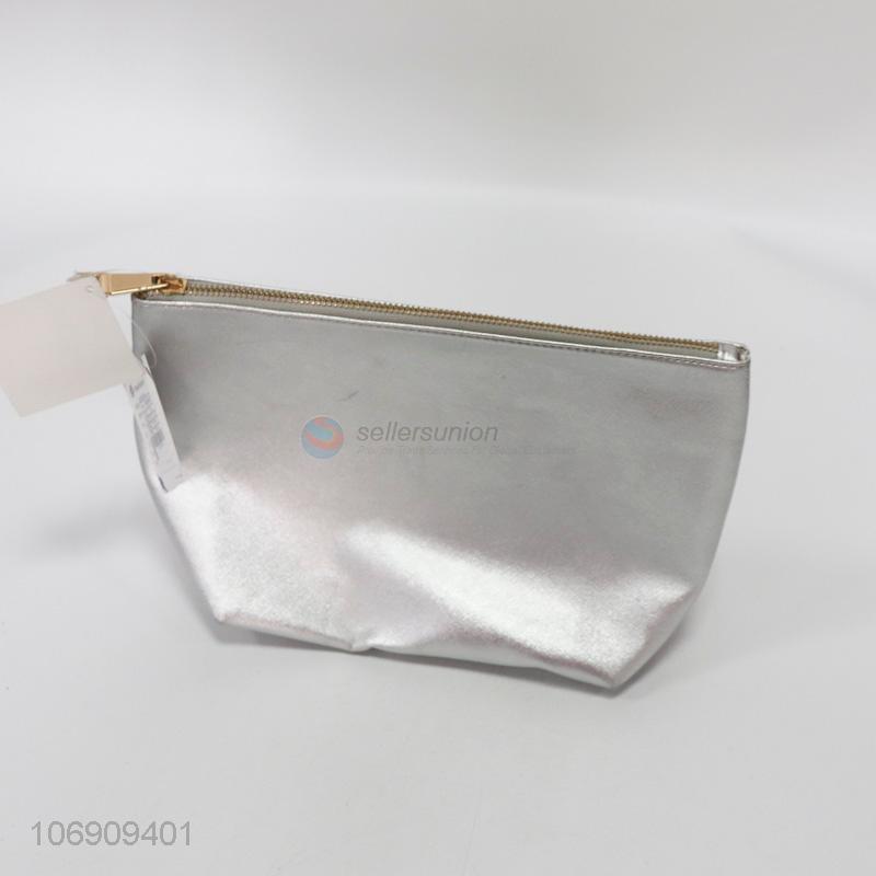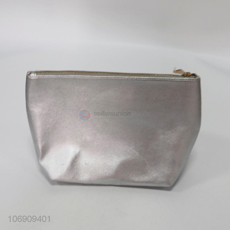 Wholesale durable silver pu makeup bag with zipper