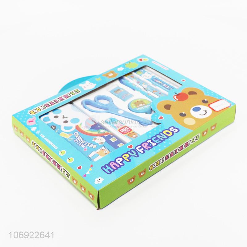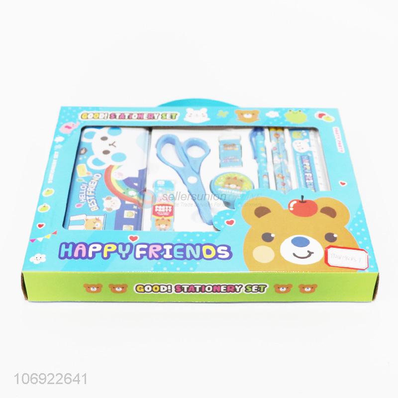 Hot selling kids cartoon stationery set pencil box scissor set