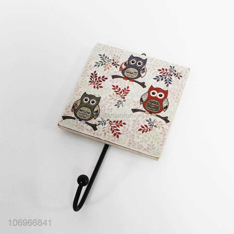 Hot sell square owl printed wooden wall hook for decoration