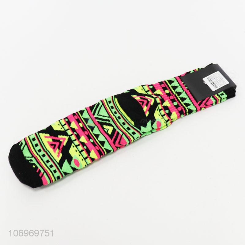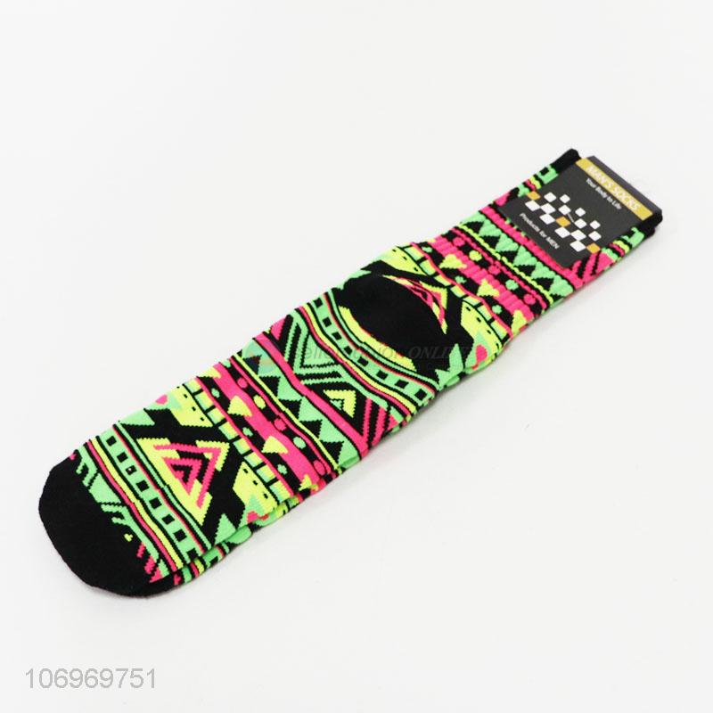 Creative design colorful geometric jacquard men winter crew socks