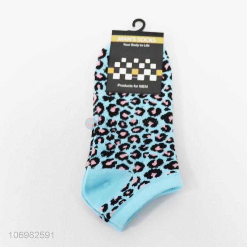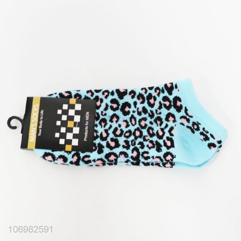 Hot selling fashion leopard skin jacquard men ankle socks