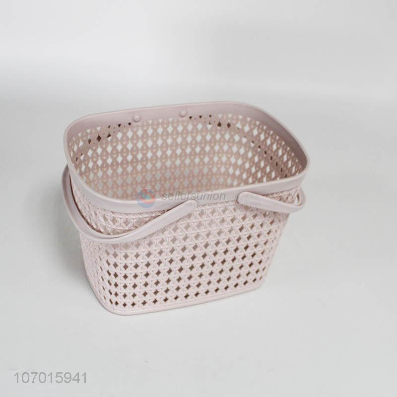 High quality hollowed out plastic storage basket with handle