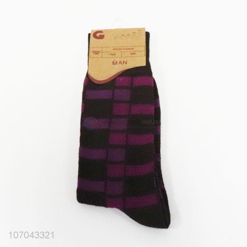 Wholesale trendy plaid men crew sock mid-calf length sock