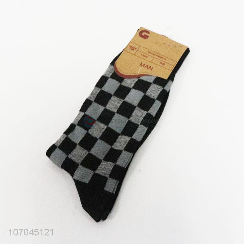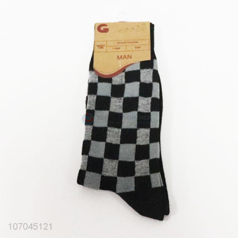 Hot sale men mid-calf length sock plaid winter crew socks