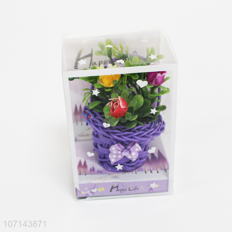 Factory direct sale home decoration mini artificial flower with rattan basket