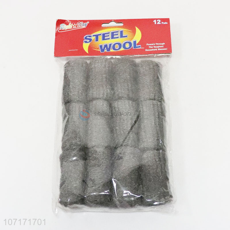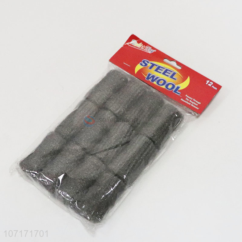 Hot selling 12 pieces steel wool cleaning pads for household goods