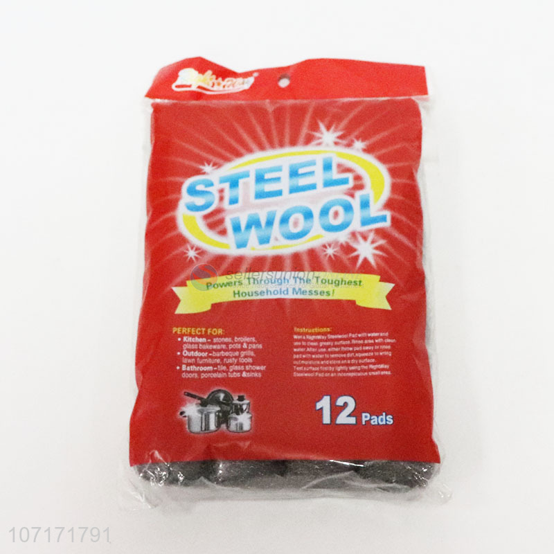 Promotional 12 pieces multi-purpose kitchen steel wool pads for bathroom cleaning
