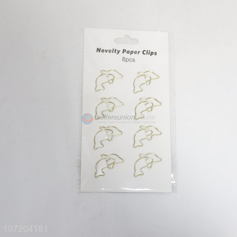 Hot selling 8 pieces dolphin shape iron paper clips metal bookmarks