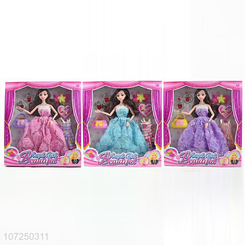 Delicate design best present 11.5inch 12joints solid body 3D eyeball wedding dress doll set