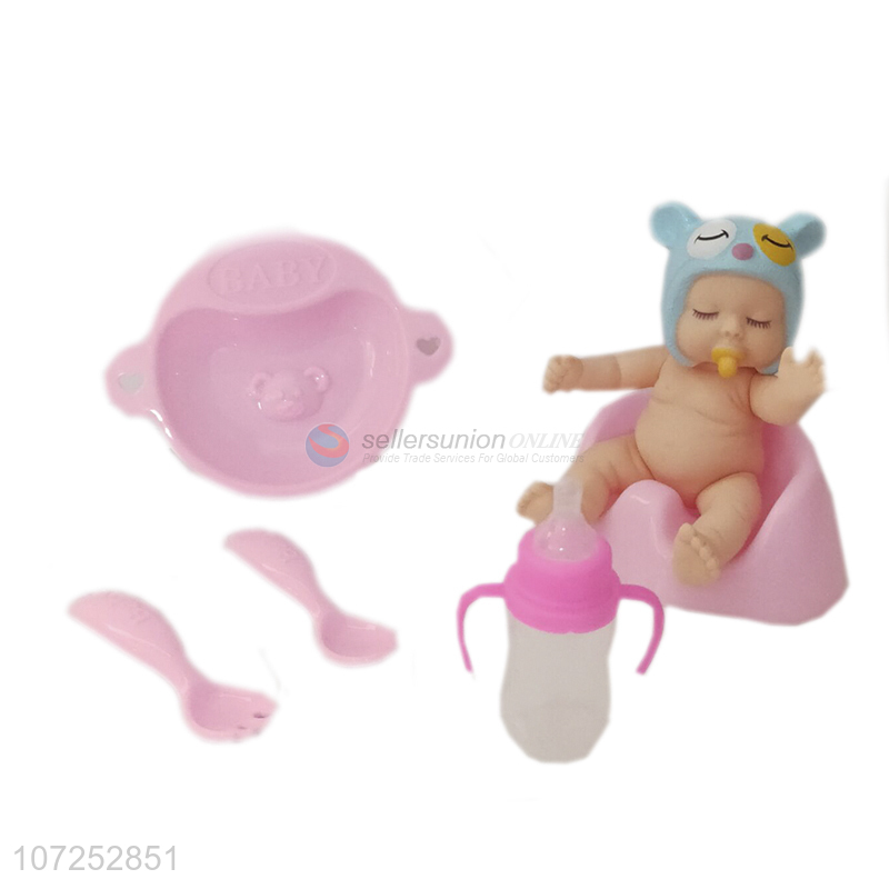 Cheap Vinyl Sleeping Baby Doll Toy With Feeder Bottle And Toilet