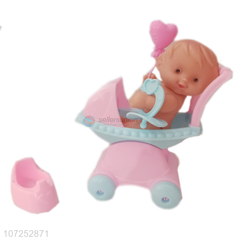 Cheap Vinyl Doll With Cart Toy Set Pretend Play Toy Baby Trolley