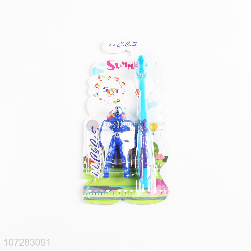Premium products cartoon shape handle kids toothbrush with toy robot