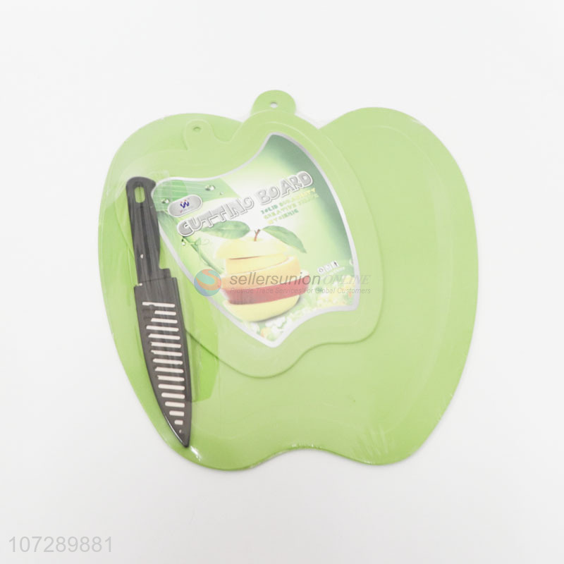 Low price kitchen supplies 3pcs eco-friendly apple shape chopping board and fruit knife set