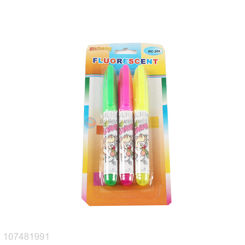 Fashion Design 3 Pieces Fluorescent Pen Highlighter Set