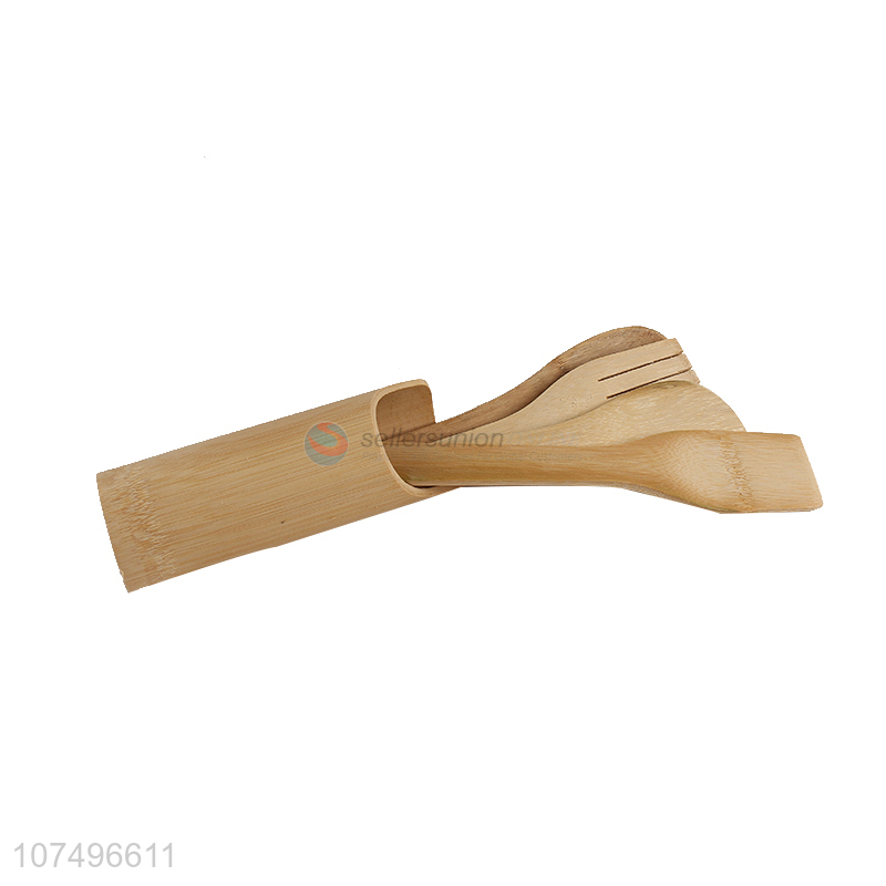 Custom logo bamboo cooking tool set bamboo spatula set with holder
