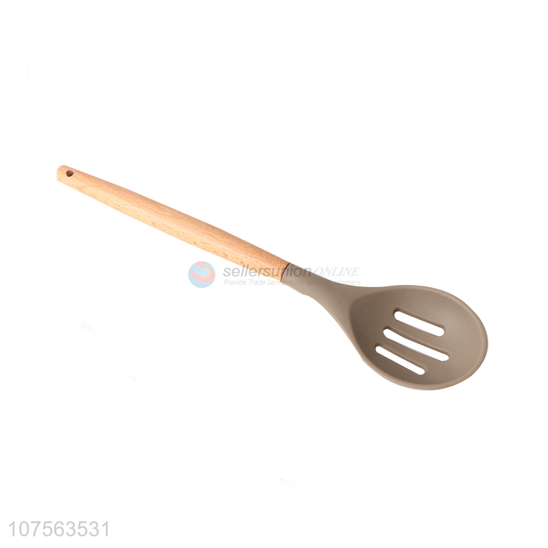 Promotional kitchen utensils wooden handle food grade silicone slotted spoon