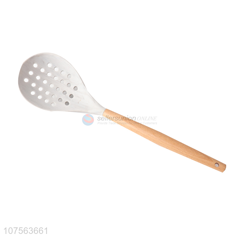 Custom logo wooden handle marbling silicone cooking skimmer for kitchen
