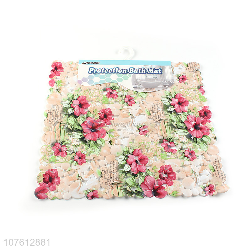 Hot sale exquisite flower printed pvc bath mat waterproof shower mat