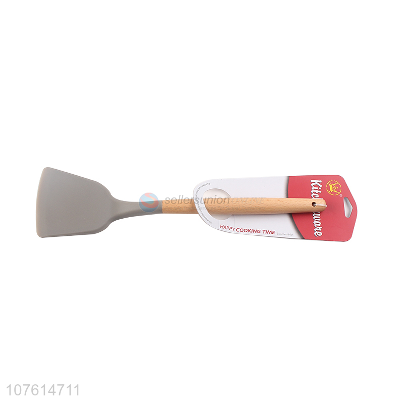 Good quality heat resistant non-stick silicone turner with wooden handle
