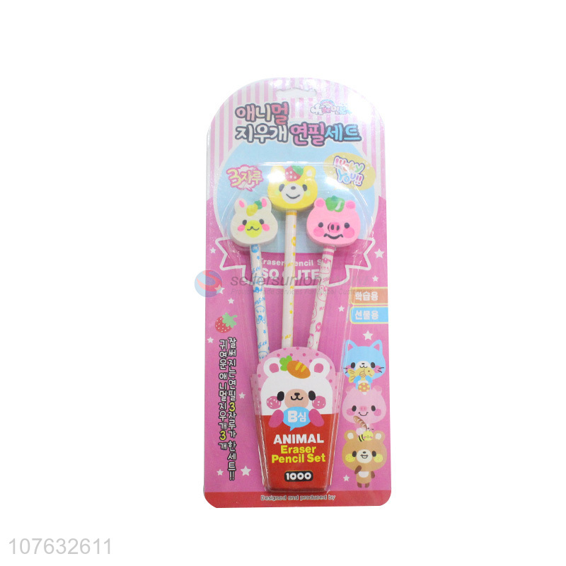 Wholesale 3 Pieces Pencil With Animal Eraser Stationery Set