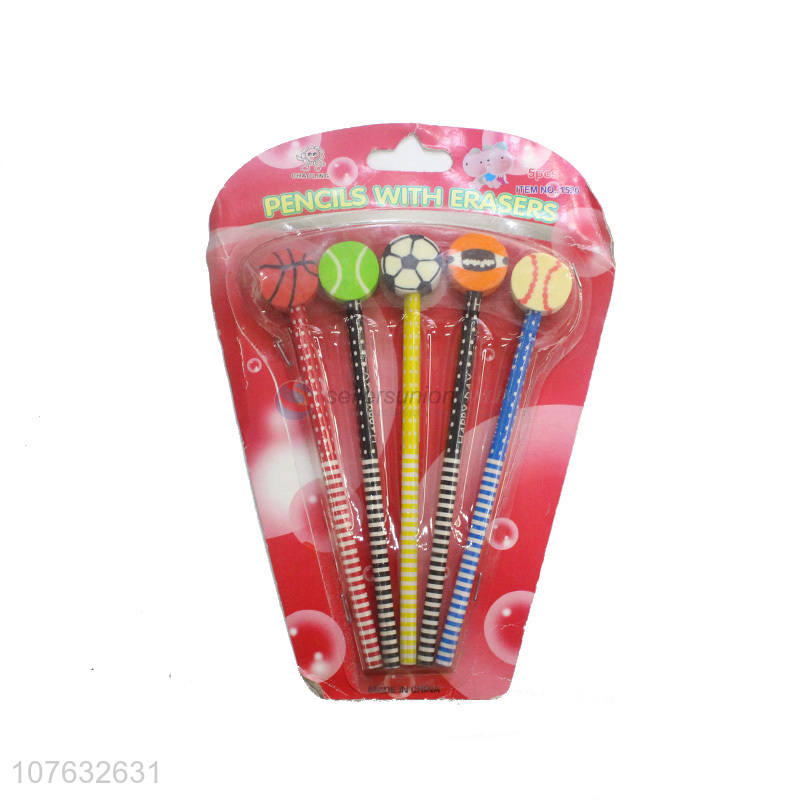 Fashion Design 5 Pieces Pencil With Round Eraser Set