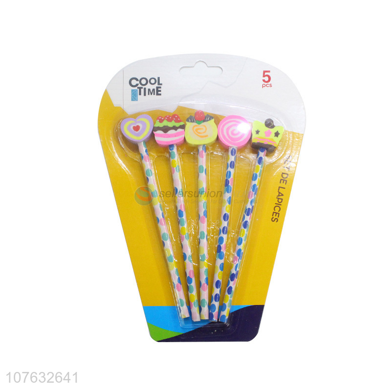 New Style 5 Pieces Pencil With Cartoon Eraser Set